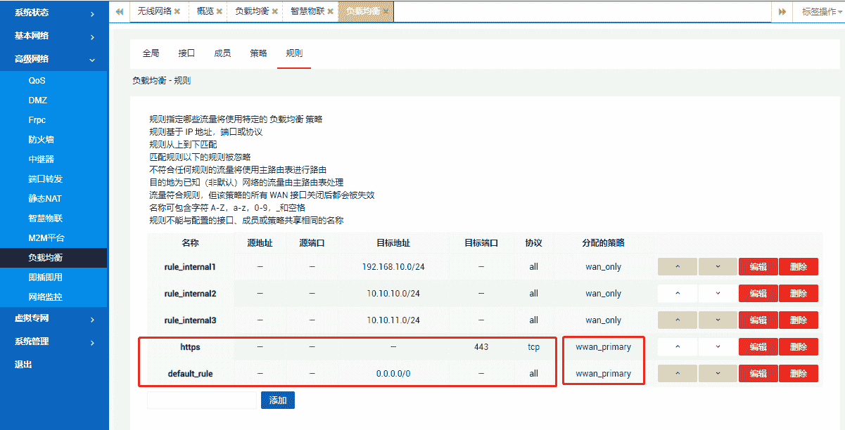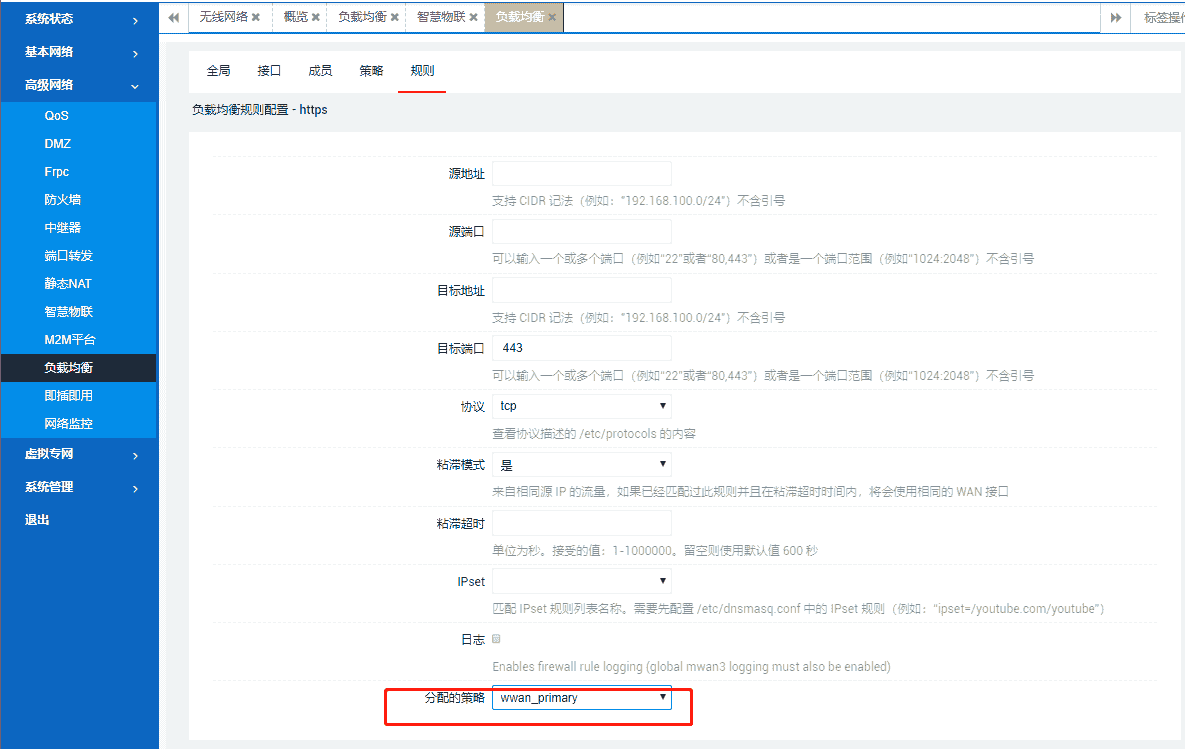 4.负载均衡页面配置无线客户端wwan(新版本默认已预置好wwan相关参数,则跳过4.1-4.3配置内容)