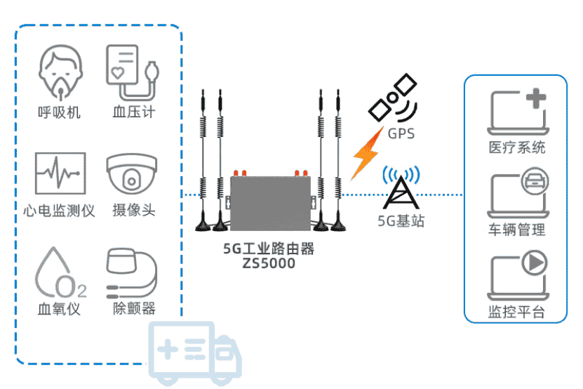 智慧医疗救护车数据采集、远程管理物联网方案-5G工业路由器应用
